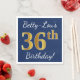 Den här enkla pappra napkin-designen innehåller ett meddelande som "Betty-Lous 36:e födelsedag!", där "36:e" har ett faux-guld-liknande utseende på blå färgad. Namn kan anpassas. Den skulle kunna användas i en födelsedagsfest till någon som firar sin trettiosjätte födelsedag. [~Z0000083]