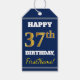 Blå, Faux Guld 37:e födelsedagen + eget namn Presentetikett