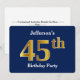 Den här inbjudan har ordningstalet "45:e" med ett faux guld-liknande utseende. Den har också en personlig namn och en blå bakgrund. Det skulle kunna användas för inbjudan till någons fyrtiofem födelsedagsfester.