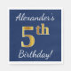 Blå, Faux Guld 5:e födelsedagen + eget namn Pappersservett
