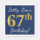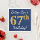Den här enkla pappra napkin-designen innehåller ett meddelande som "Betty-Lous 67:e födelsedag!", där "67:e" har ett faux-guld-liknande utseende på blå färgad. Namn kan anpassas. Den skulle kunna användas i en födelsedagsfest till någon som firar sin sextiosjunde födelsedag. [~Z0000083]