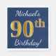 Blå, Faux Guld 90:e födelsedag + Anpassat namn Pappersservett