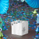 Paket-gåvan gynnar den här julhelgen med en blå julklapp. Favoritlådans utformning har en pulvertäckt julklapp som är försedd med grått och vitt snöflingor mot en grått-grinig bakgrund. Ytterligare presentartiklar och helgdag som är tillgängliga med den här designen också.