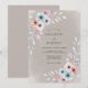 Ömtåliga blommor i mjuka blå och persikorosa nyanser flätas samman med dämpad grönska. Denna romantiska design frammanar en drömlik, eterisk atmosfär, perfekt för en fantastisk fest.