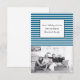 Trendig och snyggt Festive Rand Helgdag Photo Card med enkel vågrät stripe mönster i blått och vitt. Den här enkla och moderna fotokortinbjudan kan enkelt anpassas med ditt eget familjefoto och din personlig Jul hälsning. Hitta fler anpassningsalternativ genom att klicka på Anpassa. Fotografi © Storytree Studios, Stanford, CA