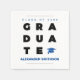 Blå feta GRADUATE-bokstäver och mössa Examen Pappersservett