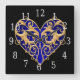 Blå filigree Heart Clock Fyrkantig Klocka