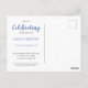 Inbjud vänner och familj att dela sina favoritberättelser och minnen med detta eleganta blå firande av livets postkortsinbjudan.