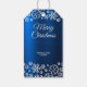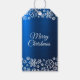 Blå Firande White Snöflingor-marinblått Presentetikett