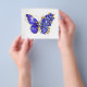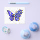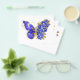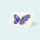 Smycken, blå, safir, glittrande fjäril med vingar dekorerade med blå, ädla blommor med gyllene blad på vit bakgrund.
