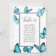 Blå akvarellfjärilar Bröllops bordplan. Elegant val för sommarbröllop. Del av en bröllopssamling. Kort med menyval.