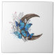 Blå fjärilar på halvmåne av trä kakelplatta
