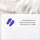 De här returetiketterna har ett par av flip-sandaler från mönster med blå och röd blomma, med ett helt eget namn och en helt anpassad returadress. Perfekt för någon som kärlek stranden och sommarfootwearna.
