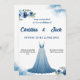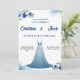 Gör din speciella dag oförglömlig med den här fantastiska inbjudan till högfärgsbröllop med en skarpsinnig blå boll-grav och delikat blå blommigt-accenter. Etealdesignen kombinerar en mjuk vattenfärgbakgrund med marinerat blåa blommor och grönt, som skapar en elegant och romantisk atmosfär. Perfekt för sommaren bröllop innehåller inbjudan utrymme för information om ceremonier, mottagningsinformation och OSA. Den följande klänningsillustrationen lägger till en unik, mode-framåtriktad tryckning som skiljer inbjudan från den. Med anpassade kan du anpassa alla detaljer samtidigt som du behåller det sofistikerade färg-schemat. Perfekt för bröllop, trädgårdsceremonier eller firande där elegans möter det moderna stil.