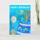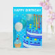 Den här designen har en blå födelsedagskalas och blå ballonger i vattenfärg.