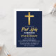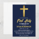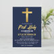Fira ditt barns speciella dag med denna snyggt och sofistikerade första mötesinbjudningar. Dessa inbjudningar har en vacker marin blå vattenfärgsbakgrund, ett känsligt utkast från kor och en aning guld, och är perfekt för ett modernt, elegant firande. Utformningen är anpassade för att matcha evenemangets tema och färg-palett.
