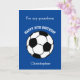 En blå fotboll 10-årsdag för barnson, gudon, son osv. som spelar fotboll eller är fotboll fläkt. Du kan enkelt anpassa framsidan av det här blåa sportfödelsedagskortet med namn. Insidan läser ett födelsedagsmeddelande som du enkelt kan redigera också. Du kan anpassa baksidan av det här fotbolls-födelsedagskortet med året. Det skulle göra ett underbart födelsedagskort till hans tioårsdag.