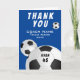 Blå fotboll Sport Tack coach-kort. Fotboll tack coach-kort med tränarens namn, lagets namn, år, spelarens namn och nummer. Fantastiskt tackkort till fotbollslagets tränare!
