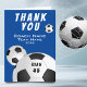 Blå fotbolls sport Tack coachkort. Fotboll tack coach kort med tränarens namn, lagets namn, år, spelarens namn och nummer. Fantastiskt tackkort till fotbollslagets tränare!