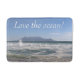 Denna moderna badmatt har ett foto av havet i förgrunden, med mycket vitt skum och en våg som blinkar mot mitten lämnat. Havet har också ett grönt färg och en antydan om strandens höger på framsidan. Bakom havet ligger ett berg (Bord-berget, Kapstaden) i avstånd, i en mörk silhuett. Himlar ovanför berget är ljusblått, med några moln mot mitten högerna av fotot. Det står "Kärlek i havet". Detta kan ändras och anpassas till ditt hjärtegrus innehåll!