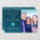 ”Fred, glädje & kärlek.” En rolig, lekfull snöflaksillustration och modern typografi på en rik, djup tealblå marmorerad akrylfärg bakgrund hjälper dig att ta emot högtidsstämningen, tillsammans med det anpassade foto du väljer. Falsk turkosfolie och vita konfettiprickar ramar in kortet. Känn värmen och glädjen under högtiderna när du skickar detta fantastiska, grafiska, personliga platta fotograttiskort. Matchande kuvert, klistermärken, totebagar, presentpapper, serveringsbrickor, heminredning och mycket mer finns också tillgängligt. Skicka detta till någon speciell! Byt bara ut exempelfotot med ett av dina egna och skriv in namnen du väljer så kan du enkelt anpassa detta fotograttiskort. Vän