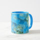 Keramiskt kaffe mugg för att hålla din favoritdryck hett eller kall som innehåller en omslutningsbild av ljusblå Fransk Hydrangea blommor, även kallad Hortensia. Markera mugg stil och färg. En underbar, blommigt design!