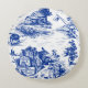Blå fransk Toile Rund Kudde