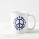 Fred mugg med blått fredstecken och hjärta. Anpassade färg samordnade text på baksidan, glöm inte att redigera! Val av keramiskt mugg eller resemugg stilar.