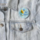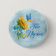 Visa ert stöd för Ukrainas folk med denna vackra knappnålknapp med vattenfärgad solrosa och fjäril i färg i Ukrainas flagga mot nödblått bakgrund. Fri ukrainsk text i skriptteckensnitt för elegant