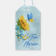Visa ert stöd för det ukrainska folket med denna märkre för söt gåva med vattenfärgad solrosa och fjäril i färg i Ukrainas flagga i nödblått läge. Fri ukrainsk text i skriptteckensnitt för elegant