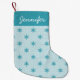 Klar julklapp med ditt namn i ett vitt, skript-teckensnitt med turkotisk blå bakgrund. Lagringen är en mönster av turkosblått snöflingor med vit snö. Snowflummen, som är en mönstrad julstock, är perfektens för barn, husdjur och vuxnor!