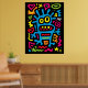 Den här funkyn hoppar blå utomjording ut med neon färg och kvirky energy. Med stort ögon och en lekfull flin är det en popkondesign som är gjord för att elektrifiera din väggdekoration och ge funky till alla utrymmen.