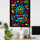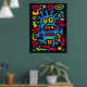 Denna funkiga blå utomjording springer ut med neonfärger och sällsam energi. Med stora ögon och ett lekfullt leende är det en popkonstdesign som är gjord för att elektrifiera din väggdekor och ge funkiga vibbar till alla utrymmen.