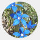 Blå gentiana är vackra alpina blommor. De som finns med på detta runda klistermärke fotograferades i de schweiziska Alpernorna. Njut av bergsblommornas skönhet oavsett var du befinner dig.
