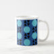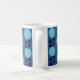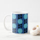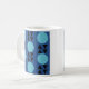 Den blå geometriska abstrakten i modern mugg mönster. Modern stil, 70 abstrakt design för detta färgstarka mugg. Punkter, cirklar, trianglar och enkla geometriska former. Modern blå presentidé för födelsedagar, mors dag, julklappar eller dekoration i köket. Enkelt blå mugg för kvinnor, mor, hustrur, vänner, flickor