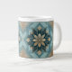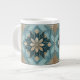 Blå Geometrisk Blommig Mandala Mugg – Turkos & Vit Jumbo Mugg