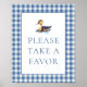 Blå Gingham Anka Förmån Bebis Duschen Skylt. Finns tillgänglig digitalt och tryckt. En modern design med en illustration av en gräsandunge och blå gingham bakgrund. Anpassa enkelt orden till dina egna.