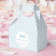 Med sin ljusblå klassiska gingham mönster koordinerar den här förmånsboxen perfekt med Lea Delaveris Design Gingham-babyduschsamlingen. Punkter matchar den sköljbara bågtiden som sitter runt anpassningsbarna. Den här förmånslådan är perfekt för varje buggdusch och fungerar också bra för en doft.