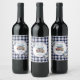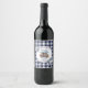Blå Gingham Bort från Marknaden Bröllopsfest Vinflaska Etikett
