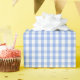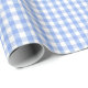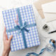 Frisk och tidlös, Blå Gingham Bris Inpackningspapper ger stugcharme till baby shower, vårfödelsedagar och picknick-tema firanden.