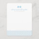 Designat att samordna med Lea Delaveris Design Blue bow gingham babyduschinghams, är detta inbjudningskort eller aktivitetskort för babydusch perfekt för gästerna till råd och bra önskemål för de nya föräldrarna och baby. Den söta texten med det blå himlar-skriptet "råder och bra önskemål" kan redigeras, liksom gråttet "för de nya föräldrarna" (anpassa den med namn). Den har också en blå gingham mönster vid grund och en ljusblå polka punkt mönster på baksidan som matchar bågen på framsidan.