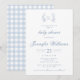 Upplev tidlös sofistikering med denna eleganta vintage-inspirerade baby-pojk-fest-inbjudan, med ett charmigt babyblått gingham-mönster. Perfekt för eleganta baby-pojk-fester.