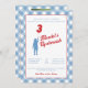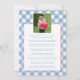 En klassisk blå gingham och röd upsherin-inbjudan, med ett foto och redigerbar upsherin-dikt på baksidan.