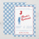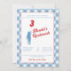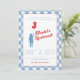 En klassisk blå gingham och röd upsherin-inbjudan, med ett blått gingham-mönster på baksidan.