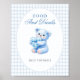 Blå Gingham Nalle Neutral Barnkalas Poster