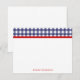 Ett platt skydd med en gräns av blå gingham med röd trim överst. Anpassa med ditt namn i rött i grund.
