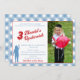 En klassisk blå gingham och röd upsherin-inbjudan, med ett blått gingham-mönster på baksidan. Anpassa med ditt eget foto!