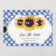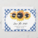 Blå Gingham Rustic Solros Bröllop Photo Spara Datumet