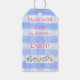 Blå Gingham-ruta blommor GJORD MED KÄRLEK lg Presentetikett