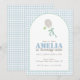 Fira en sportig födelsedag med denna stilrena blå gingham-tennis födelsedagsinbjudan. Perfekt för tjejer som älskar tennis och sporttemade födelsedagsfester, denna preppy atletiska design skapar en rolig och energisk inbjudan till din fest.